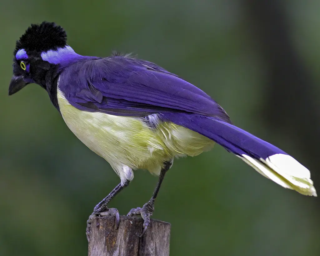 Mede em média 35 centímetros de comprimento. Tem uma crista frontal rígida que cobre as narinas, tamanho global e plumagem semelhante a outros membros do gênero. É bastante parecida com a Gralha-de-nuca-azul – Cyanocorax heilprini, da qual difere por ser de cor azul celeste pálido, enquanto que a gralha-de-nuca-azul tem como cores predominantes azul escuro nas partes superiores e azul claro nas partes inferiores e também por apresentar três marcas faciais azuis (supraocular, subocular e malar) contra apenas a marca malar da gralha-de-nuca-azul – Cyanocorax heilprini. As costas de ambas são semelhantes, diferindo apenas pela tonalidade azul do manto, asas e cauda. É a único membro do gênero com coloração amarelo pálida da íris e cauda também com a ponta pálida.